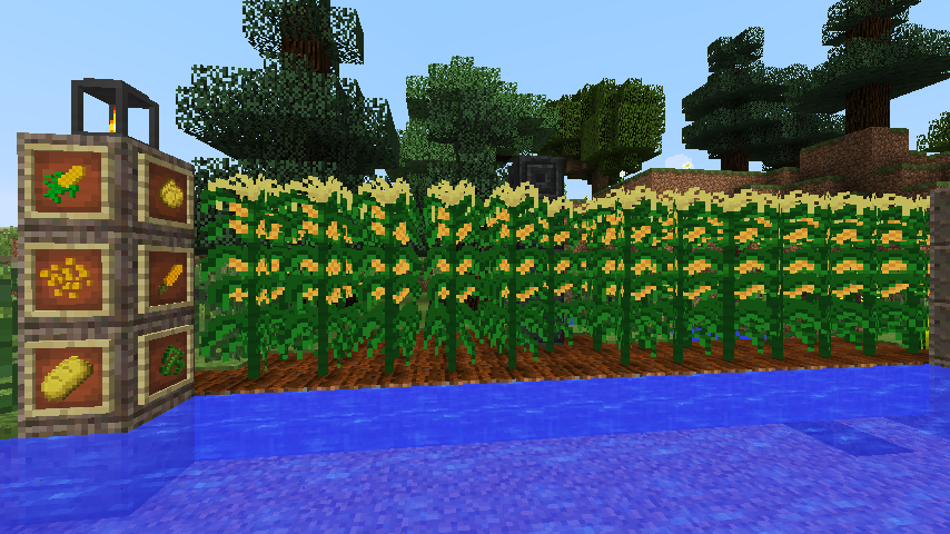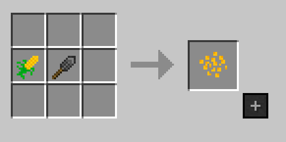 The ripe cobs can be directly harvested by right clicking on the plant, in turn they can be eaten raw, cooked, or harvested for seeds. The seeds are harvested from the corn cob item by use of a work blade, and can be replanted or ground into flour for making Corn Bread.
