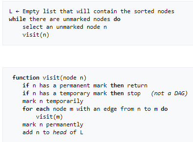 So this is the alg I'm using from https://en.wikipedia.org/wiki/Topological_sorting: