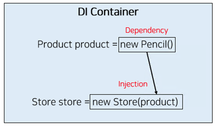 코드처럼 Pencil이라는 객체를 만들고 그 객체를 Store로 주입시켜주는 역할을 위해 DI 컨테이너가 필요하다.