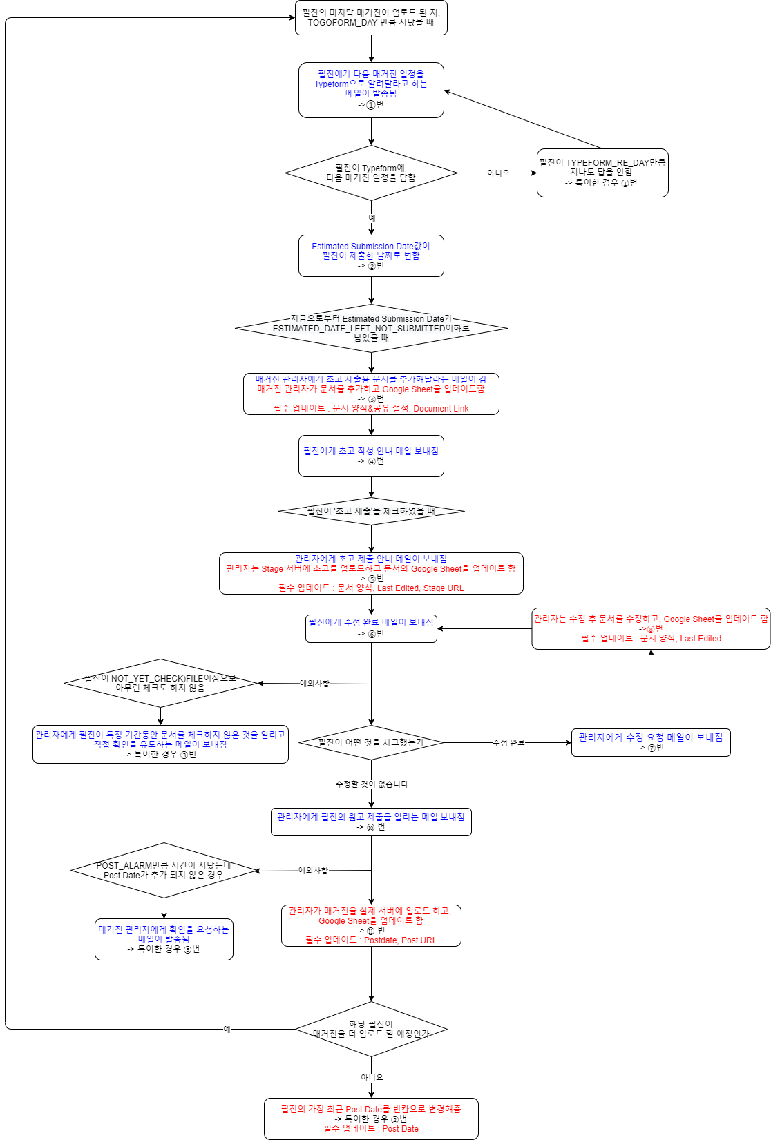- 기존에 사람이 하나하나 다 관리하던 매거진 업무를 자동화 하는 프로젝트