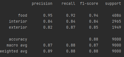 - 0 : Food, 1 : Interior, 2 : Exterior
