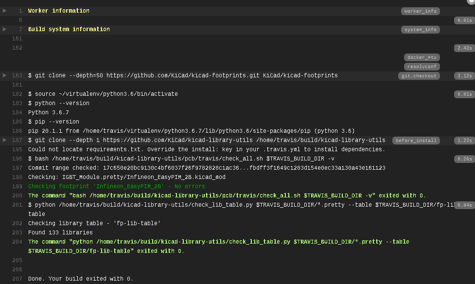 I just saw letters instead of numbers for footprint pins. I wasn't aware of that. I custom-numbered them to avoid travis violation after