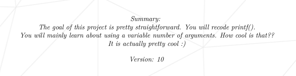 Ok, well. First of all, we have to check the subject: “_ft_printf _— Because ft_putnbr() and ft_putstr() aren’t enough”. So in general with this project, I will try to implement the function printf() on my own.