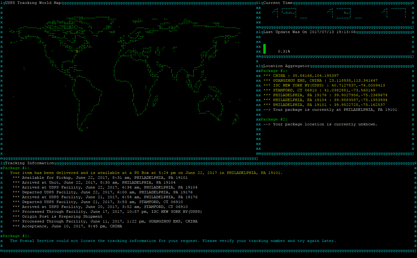 Bored of tracking your shipments the mundane way? Tired of refreshing a plain old web page to get information? Then, grab an open terminal window, and get started with the Package Mapper!