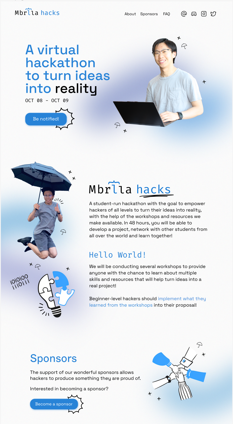 Create a parallax effect with the small floating figures and blurs around nick's image in home, about and sponsor section <img width="494" alt="Screen Shot 2022-07-07 at 9 25 47 PM" src="https://user-images.githubusercontent.com/68720970/177898041-2035bd8b-15eb-4b09-8314-60f2c657d9c5.png">
