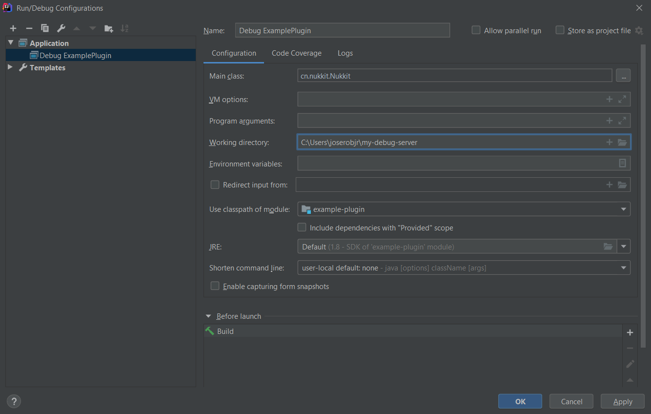 Note: You don't need to place the PowerNukkit jar in the folder, your IDE will load it from the maven classpath. - Create a folder named