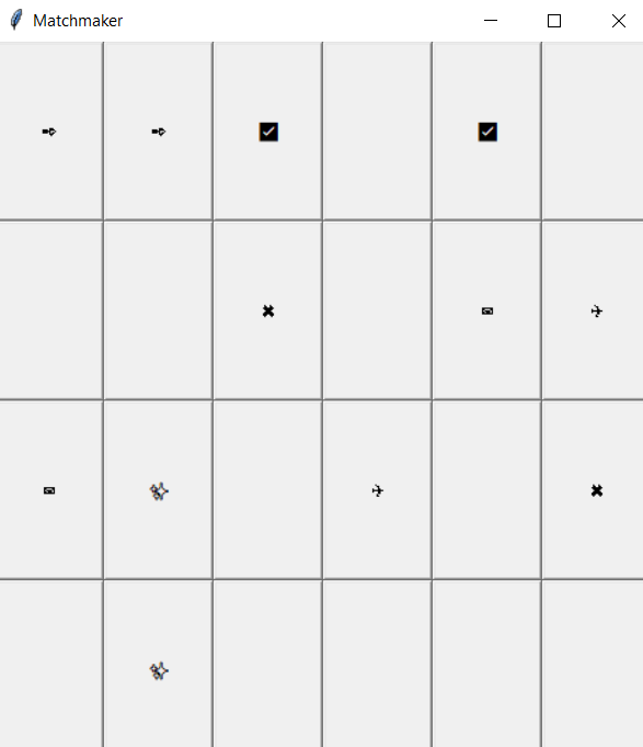 Match-Maker-game This game is made using turtle gaphics (Python). When two icons will match consecutively, it will flip towards outside.
