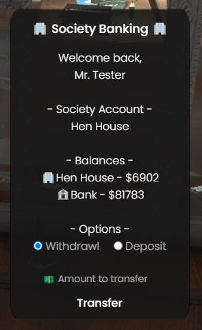 TriggerEvent('jim-payments:Tickets:Give', { sender = Ply.PlayerData.charinfo.firstname, senderCitizenId = data[1].sendercitizenid, society = data[1].society, amount = data[1].amount })The latest banking systems are very simple to use and add, simply look in the atms.lua and change the config options at the top
