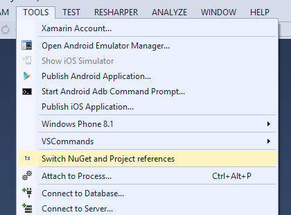 The NuGet Reference Switcher extension is developed by Rico Suter using the MyToolkit library.