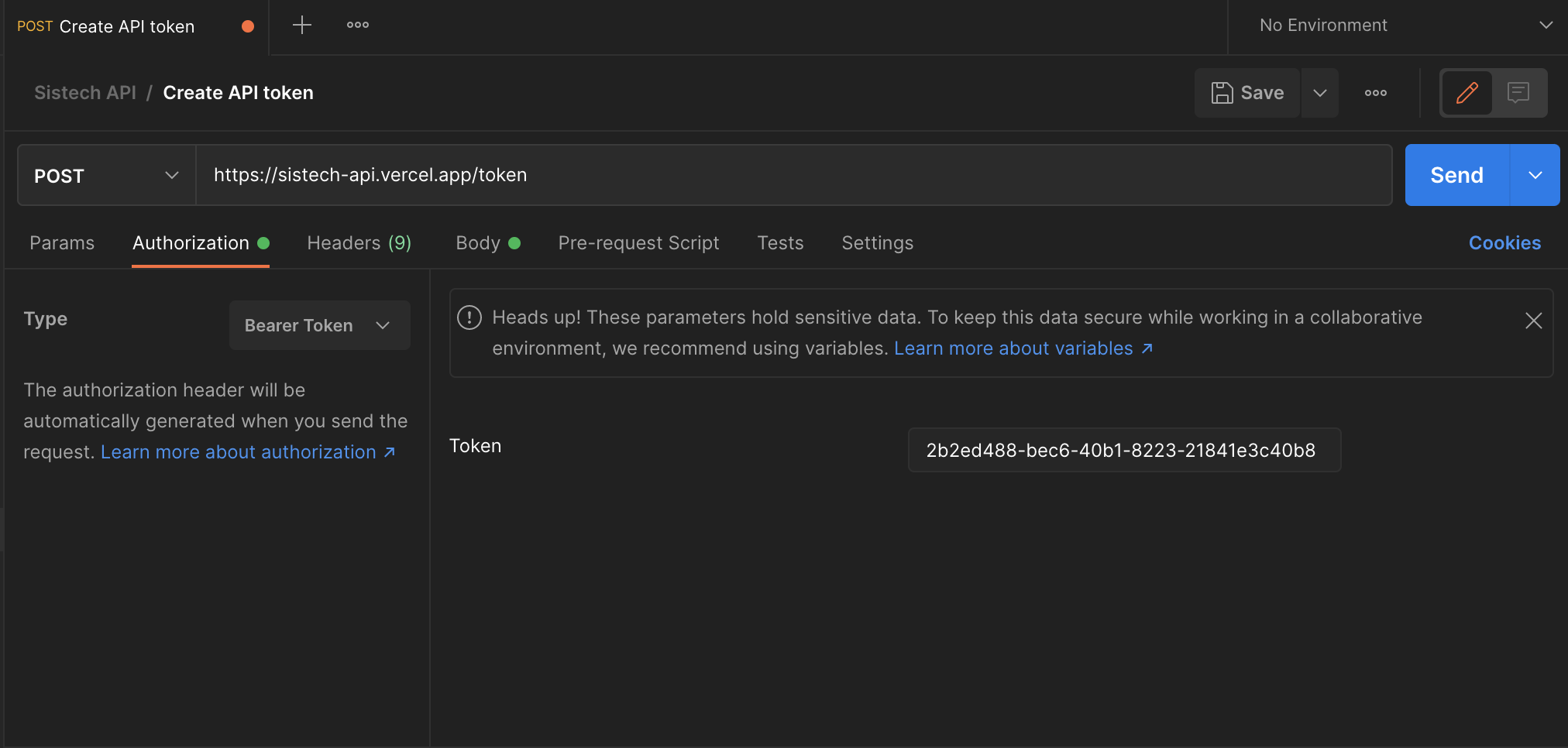 The API work on a simple authentication method, an API token that you need to previously register. From the recently imported documentation in postman select the Create API token.