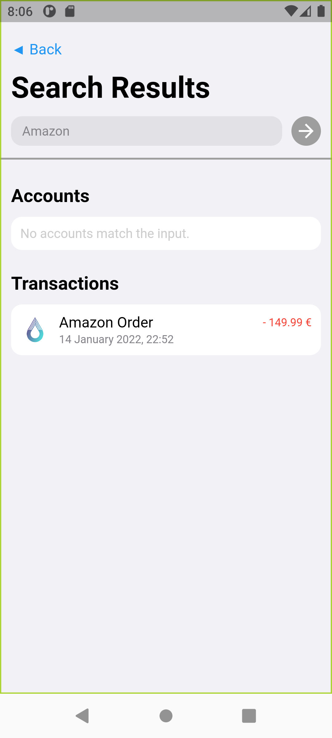 - search screen (shows matching accounts, transactions)
