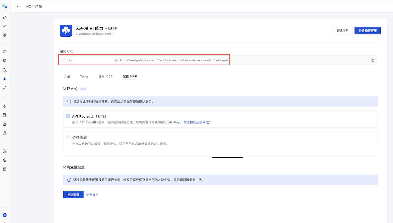 .env文件,将上一步获取的<your-webhook-url>和<your-token>填入。 - 部署函数型智能体,推荐使用 CloudBase CLI 进行部署