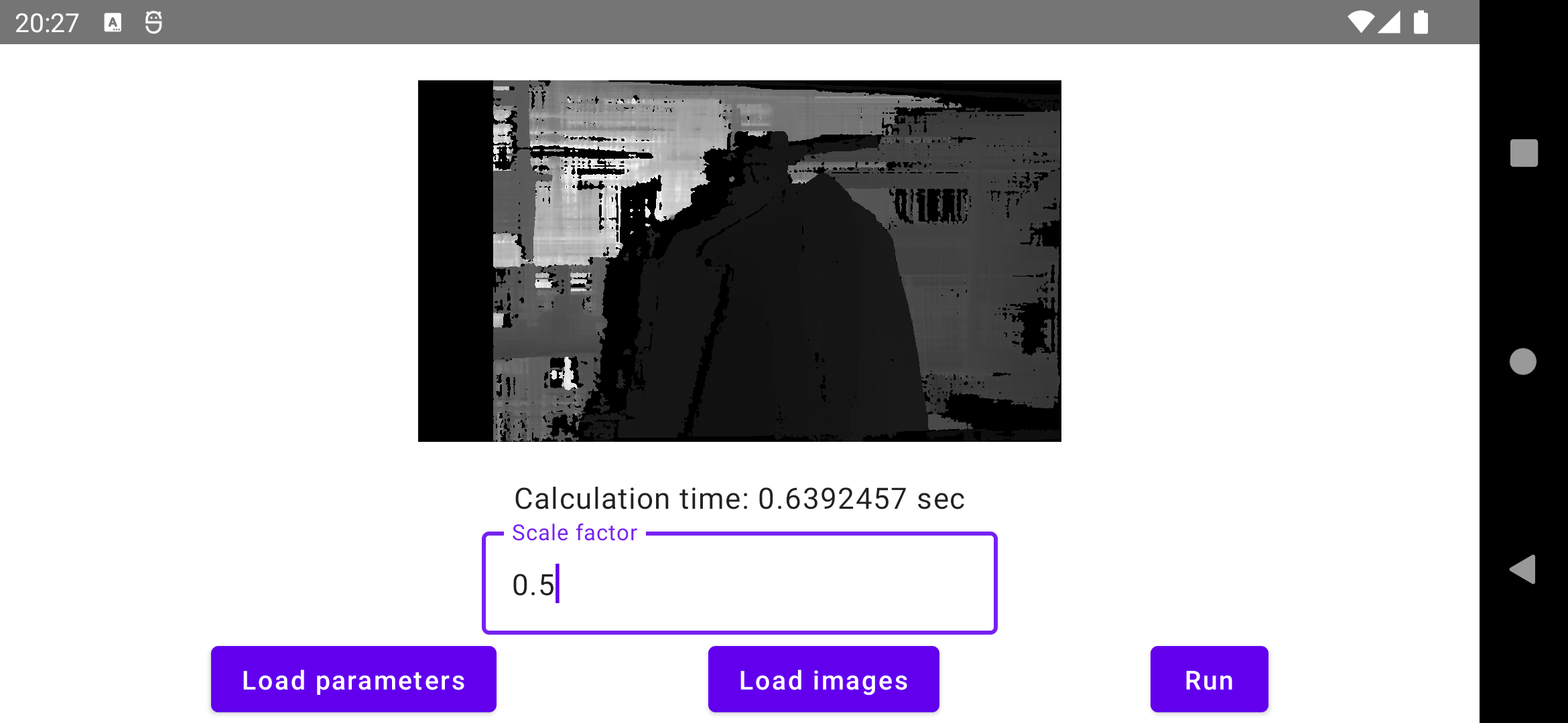 The current implementation is capable to compute up to 10 depth maps per second on modern Android smartphones.