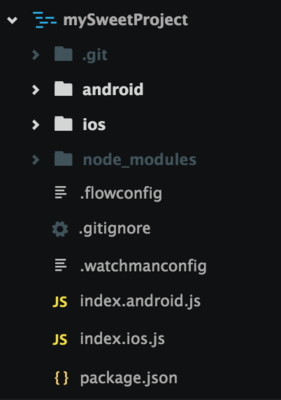 Nota: existen dos archivos index(index.android.js / index.ios.js), esto se debe a que cada plataforma utiliza el que le corresponde; por ejemplo, cierto componente funcionará de diferente forma para cada plataforma, solo debemos crear componente.android.js y componente.ios.js. Sweet, right?