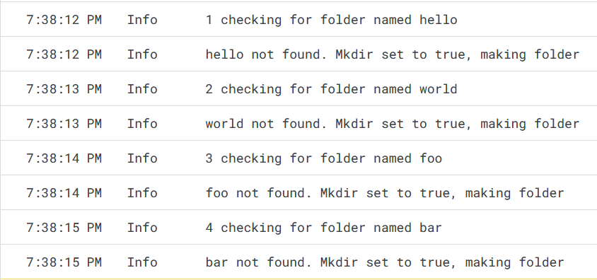 | mkDir | Allow the function to make folders where it can't find ones | No | BOOLEAN - Either true or false but defaults to false - folderFinder("hello/world", "folder ID", true) |