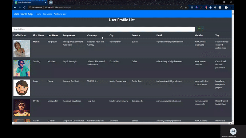 A simple indexed and searchable User Profile App using Redisearch as the datastore. This App allows a user to list all the users, add a new user as well as search for a user in one of the fastest mode. Usually search based indexing databases or engines are quite heavyweight and need lot of settings to be done.