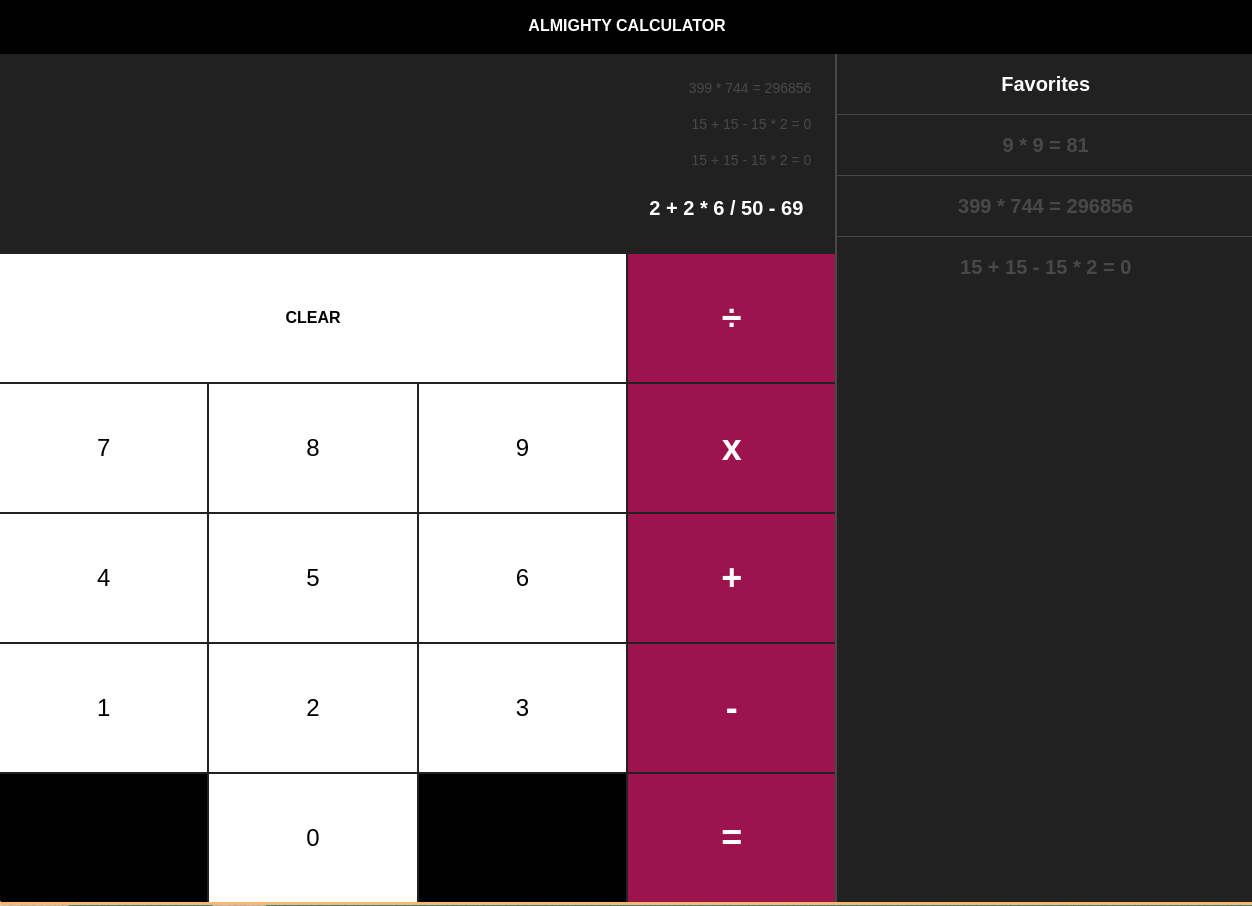 - When a favorite operation is clicked, it should be set in the calculator so the user can check the result again