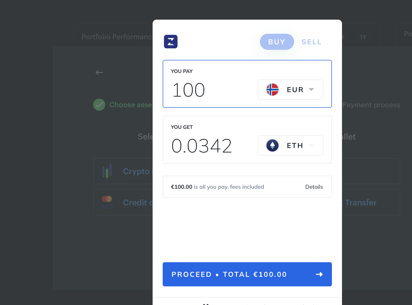 Another section could be "Buy crypto with FIAT"