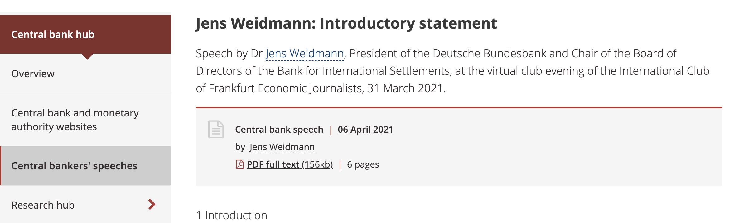 When bisCrawler is running, you will be asked which page you would like to scrape (please, type any single digit from 1 to last page). Then bisCrawler will automatically generate pandas dataframe to restore the banker speeches and the urls to the textual document.