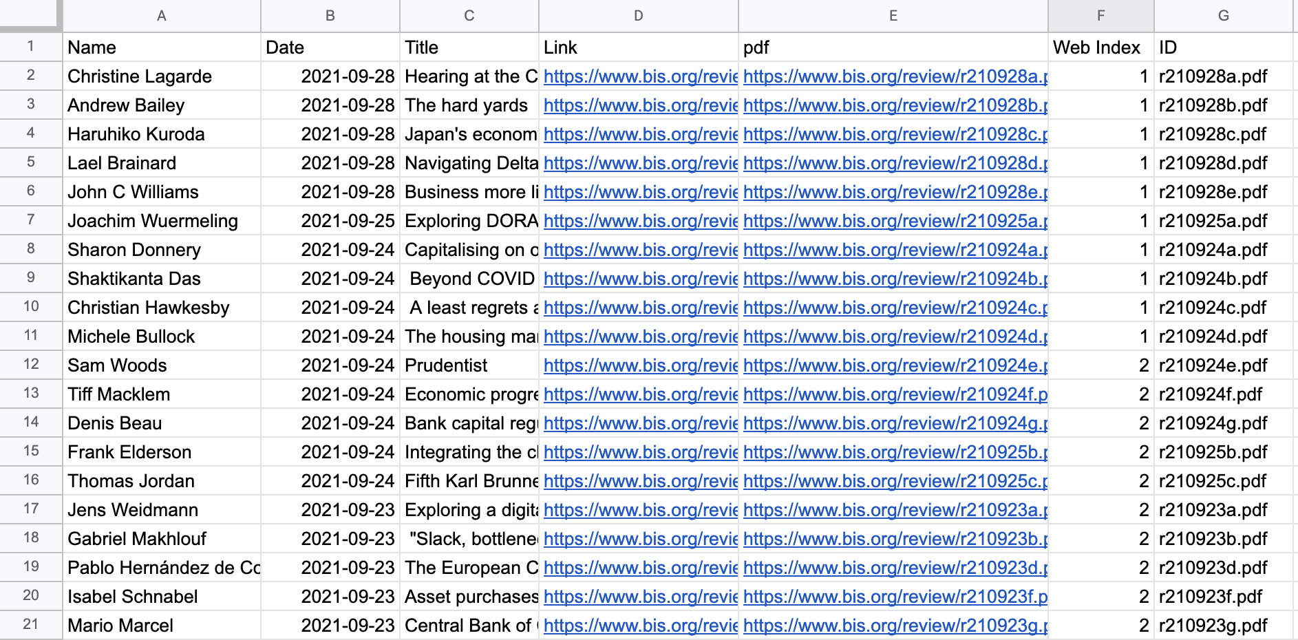 The scraped dataframe will be stored as central_bank_speeches.csv in the bisCrawler folder.
