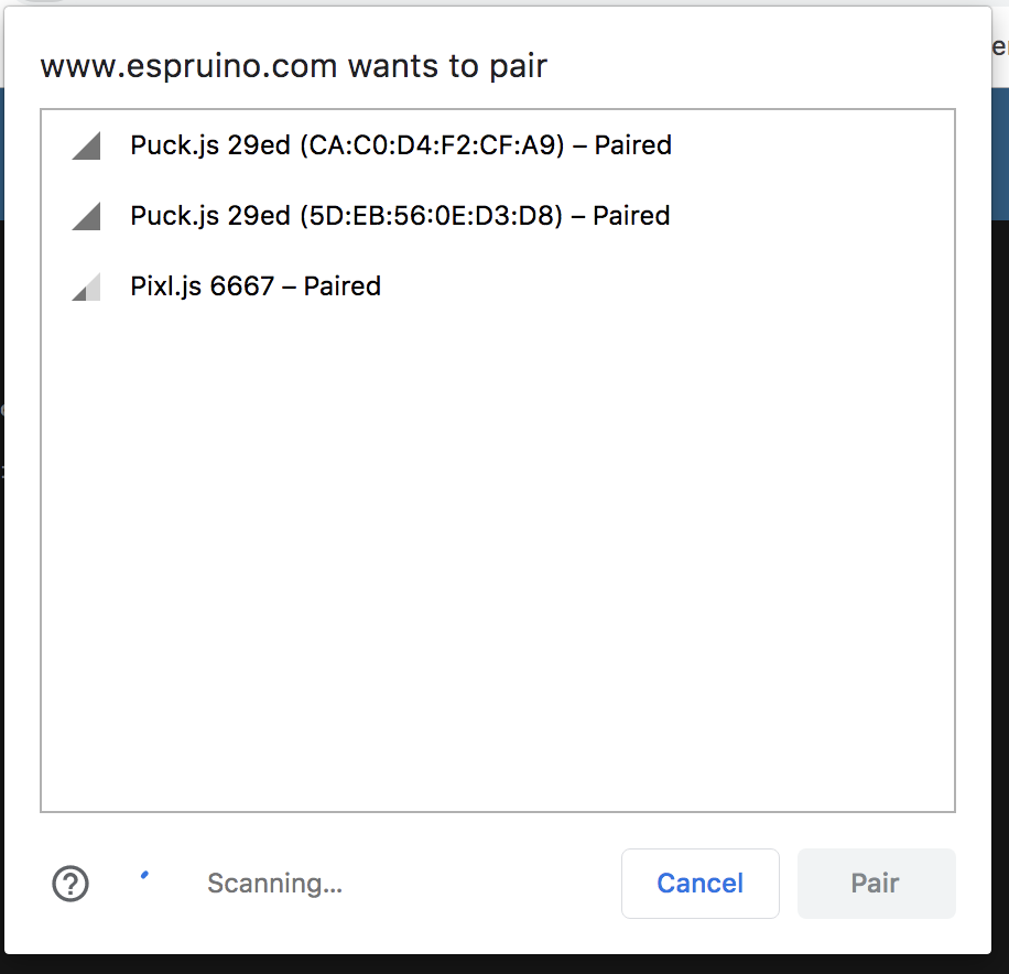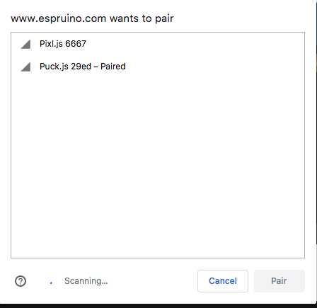 Got a slightly weird problem, dig out one of my pucks as I have a project idea, trying to connect it to my iMac to use the web IDE but when I scan for webbluetooth devices it sees the same puck name twice (with different ?MAC? addresses?