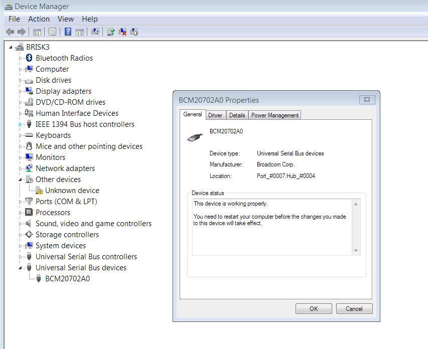 I was only trying to use a puck.js on win 7/64-bit. Not having Bluetooth on my PC I bought a BTL4LE as recommended from here: https://plugable.com/products/usb-bt4le . Zadig timed out after 5 mins consuming no cpu, and then froze. I had to kill it with Task Manager. But examination of the BTL4LE using Device Manager suggests the winusb driver was correctly installed (see attached screen clips). However, Espruino native IDE only recognises COM1 and not the new BTL4LE device (which has name BCM20702A0).
