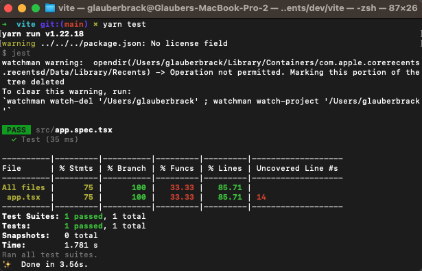 When attempting to clone this repository and run 'yarn test,' an error occurs due to a missing jest dependency.