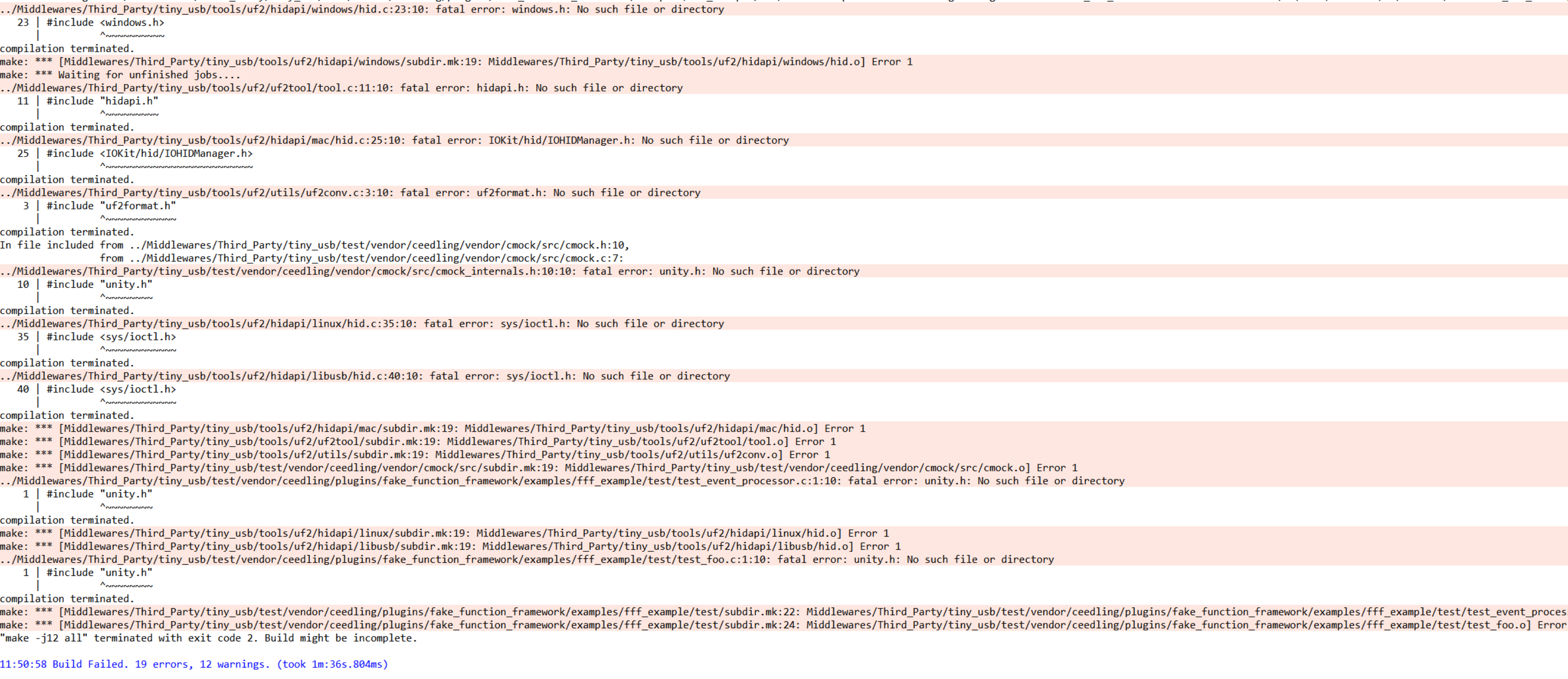 I am getting these error when running the tinyusb submodule on windows 10. I am new to using submodules and I need some guidance on rectifying these issues. are these files just missing in the submodule or should they be removed? |