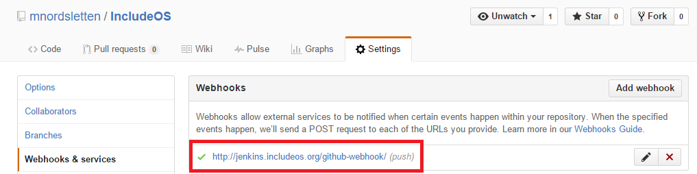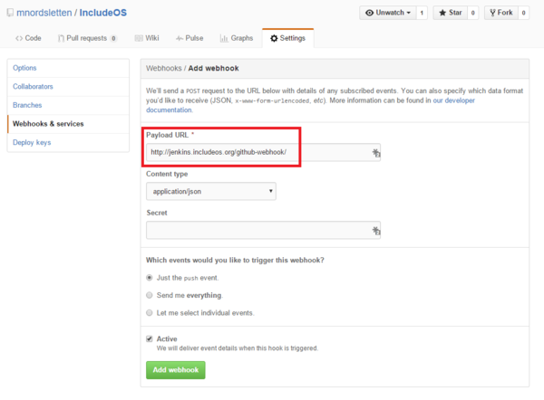 https://jenkins.includeos.org/github-webhook/. Then press Add webhook