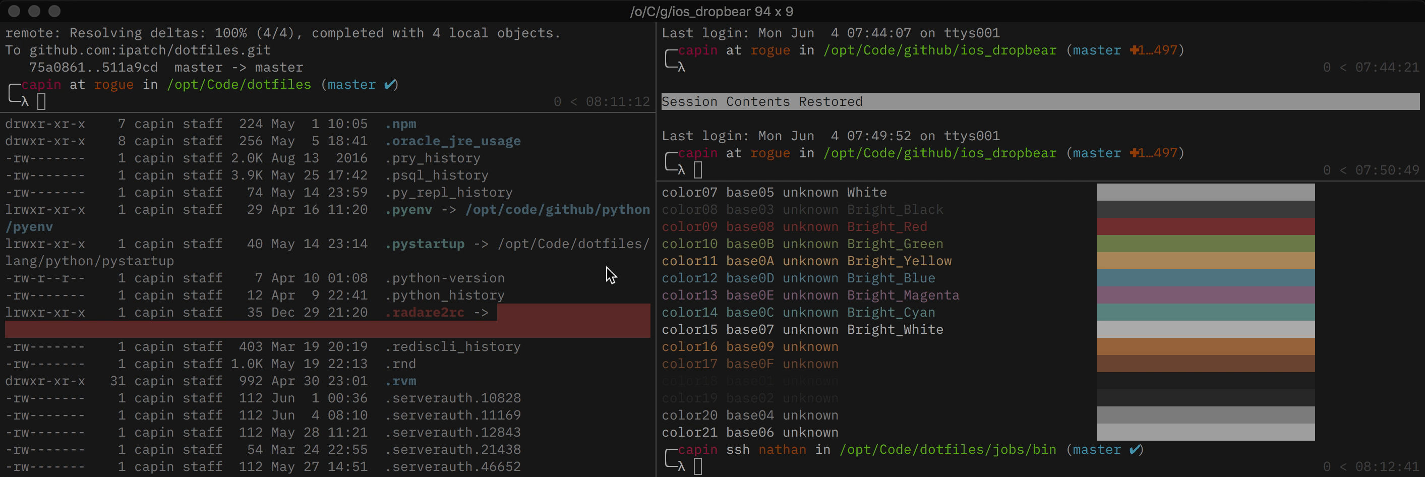 the_platinum_searcherto find patterns within a directory of source code files. - little updates for setting up custom terms in tmux.