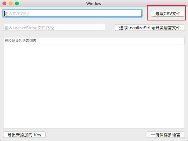 CSV文件读取已经翻译的内容一键保存到指定的.Strings文件里面 - 支持查看某种语言未翻译和已翻译部分
