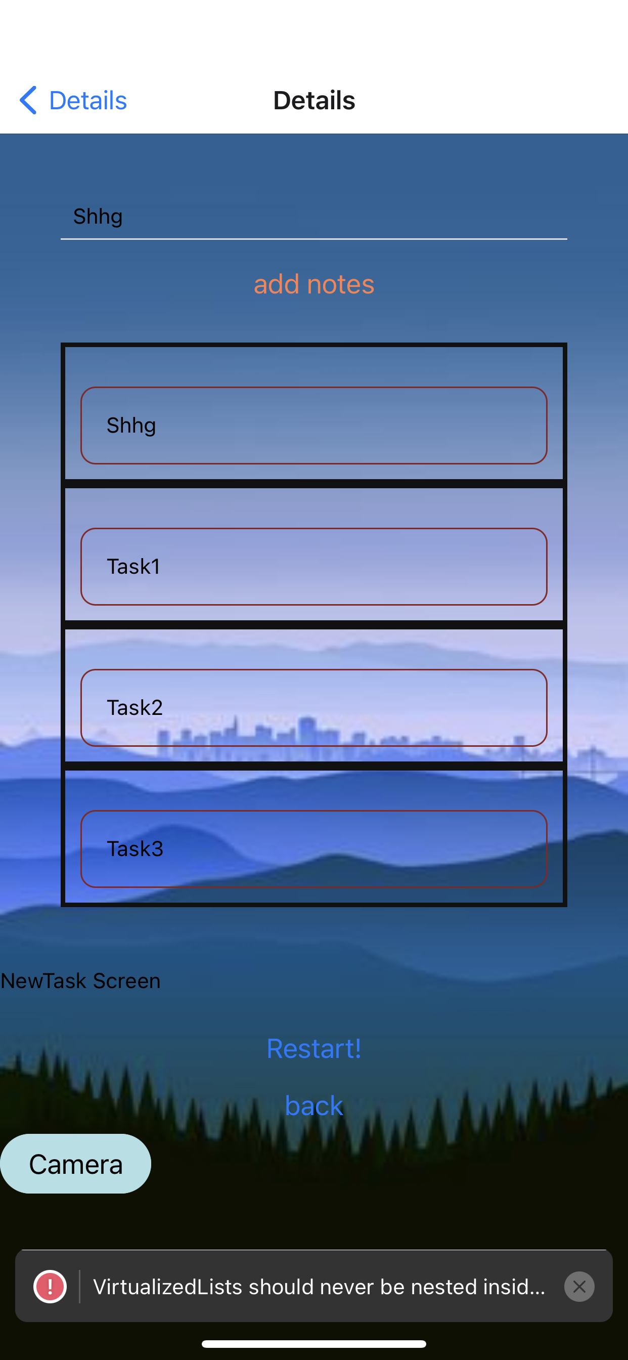 The user can add notes/tasks and on clicking it, a new screen dedicated to that note/task is built. In the new screen, more tasks can be created, upon click more screens are created for each task. We can go tasks task to tasks recursively.
