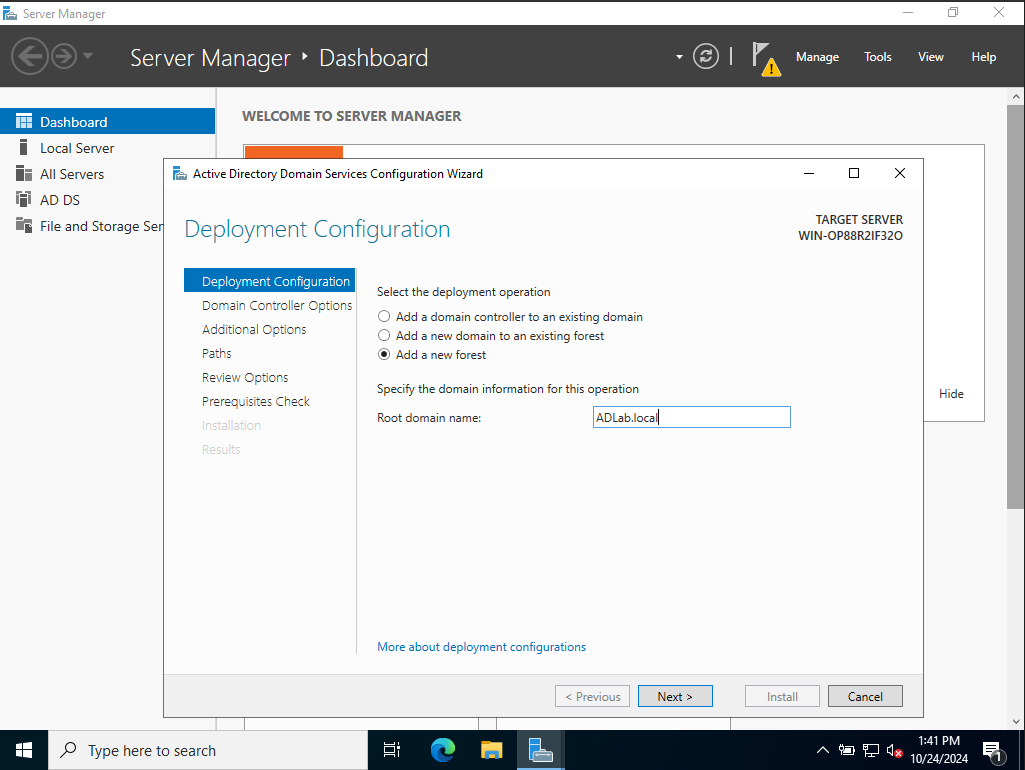 Promoting Windows Server to Domain Controller(adding Domain Services features):