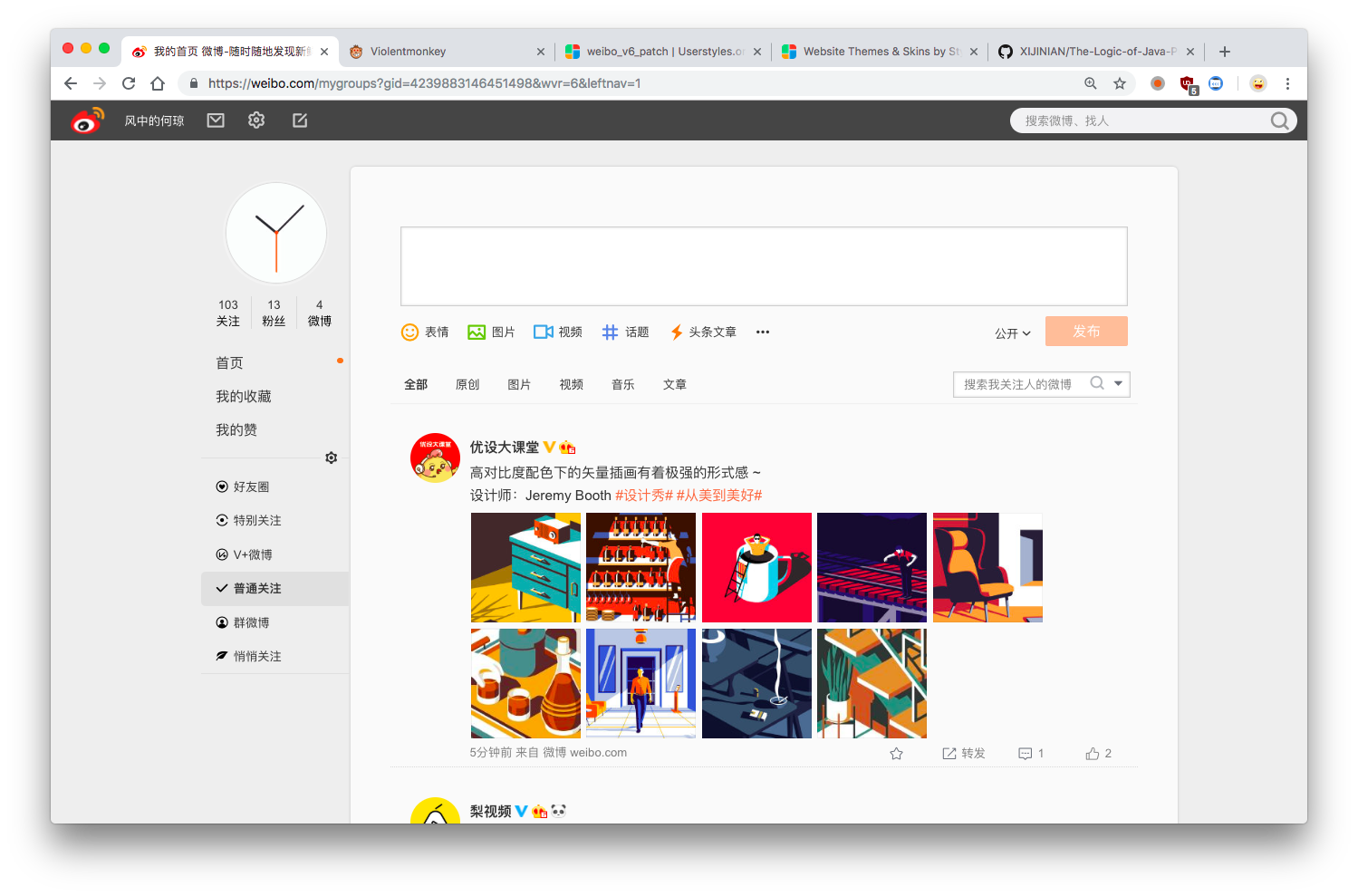 说说我为什么喜欢它吧,不用它之前,微博的界面是这样的: