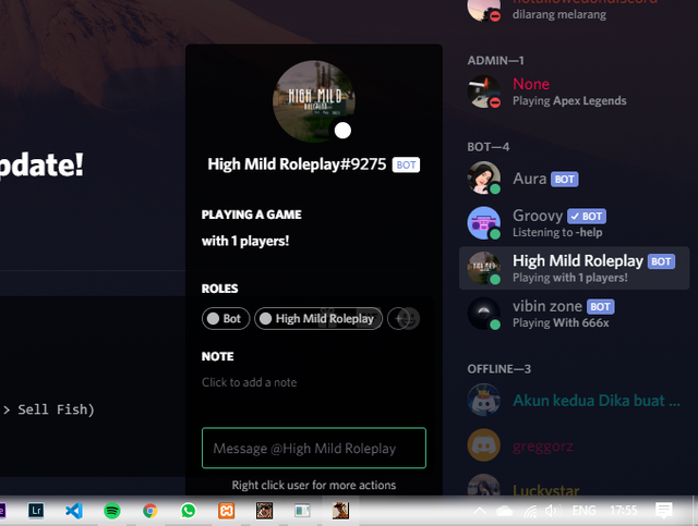 Counting Player on Discord Presence Requirements: discord-connector Installation: Copy and paste the script into your public function. Preview: Notes: Feel free to open issues if you get error when compile/need help.