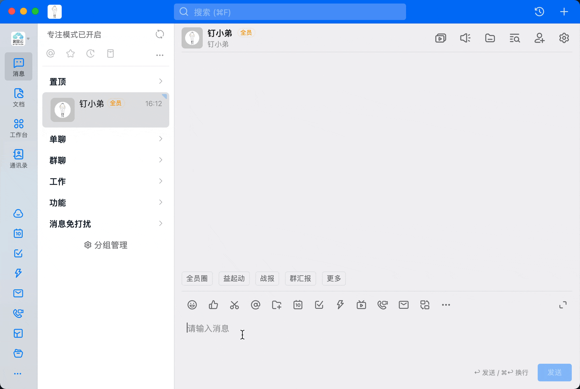 “钉小弟” 是名字,可以发送消息到指定钉钉群,效果如下: