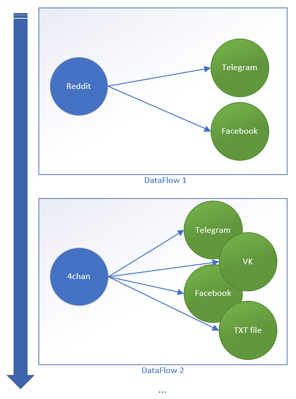 ExtensibleMessageBroker pulls data from one place (a data source) and pushes it to another places (targets).