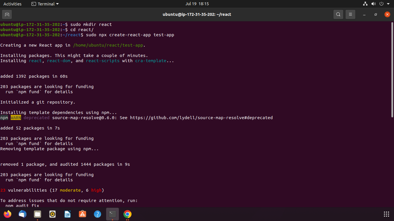 Step-3: Create a React app and deploy it on the server for both the development and production environments.