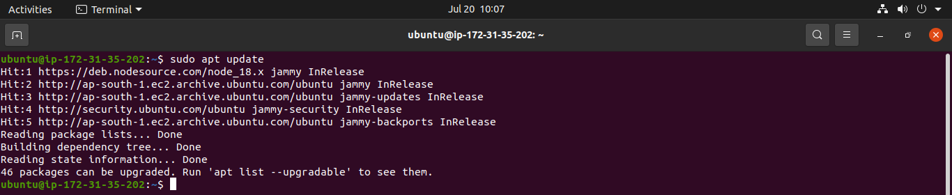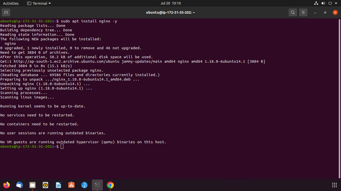 For this, install nginx using sudo apt install nginx -y but before this update the list of packages using sudo apt update