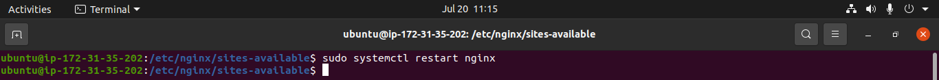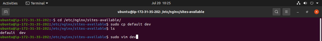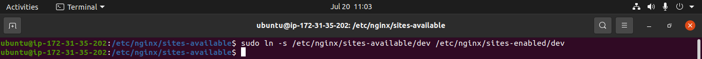 Next, let's enable the file by creating a link from sites-available to the sites-enabled directory, which Nginx reads from during startup: