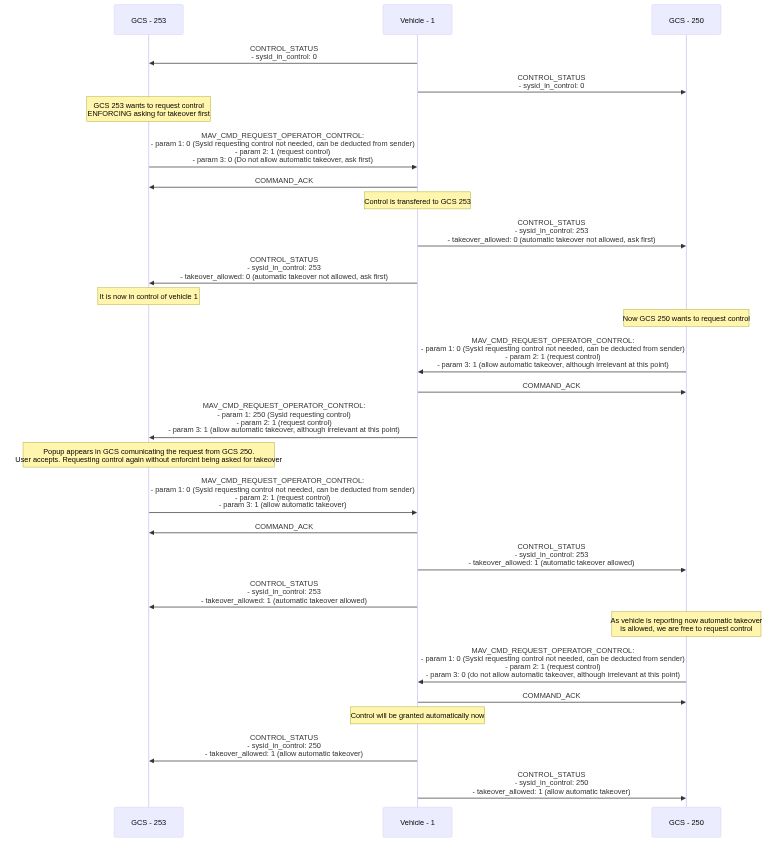 | 49 | + Note over GCS - 250: Now GCS 250 wants to request control. <br> As GCS 253 didn't enforce being asked, <br> it will be granted automatically. |