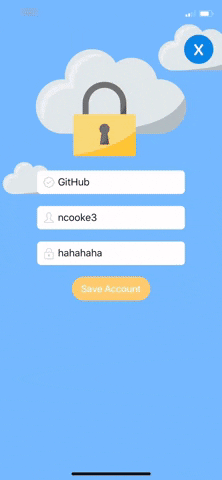 One of the main goals for this project was to create the best user interface I could make. I'll admit I didn't have much of a plan when I started, but I found a theme pretty early on. I added a Lottie animation to my project and was amazed at both how simple it was to add the Lottie and how much fun it brings to a view. I can't recommend them enough, so check them out! The Lottie I added featured some animated clouds with a lock that pops in and out every few seconds. I liked it so much that I decided I would stick with the clouds theme because it felt playful, light, and airy. In retrospect, I'm glad I chose this design scheme since it offers a little fun juxtaposition to the mundane, serious nature of managing your passwords.
