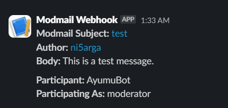 The app sends all incoming and outgoing modmails from your subreddit's modmail to your Discord/Slack channel through webhooks. Here are the details the app currently sends (more to be added soon):