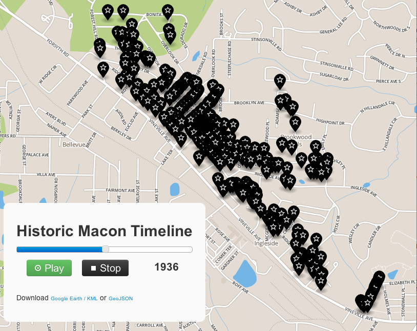 The timeline code was repurposed to show a building timeline for Historic Macon.