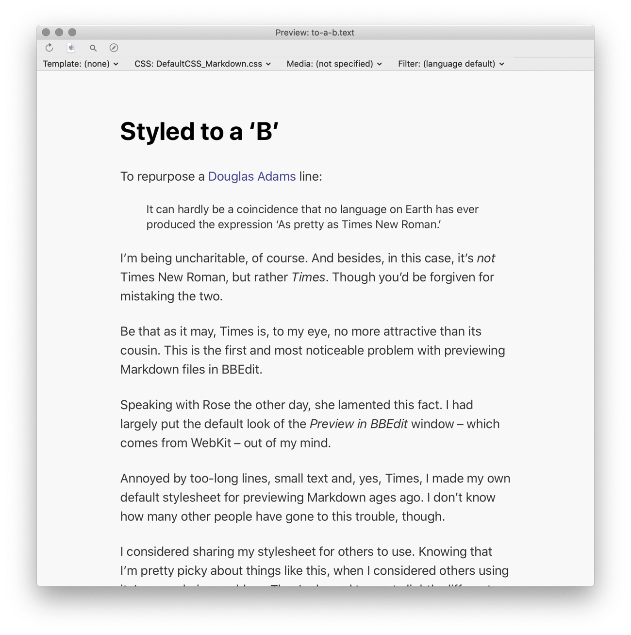 When you’re ready, open the Preview window: Markup › Preview in BBEdit (⌃⌘P)