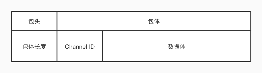 接下来的事情就很简单了,我们设计一个十分简单的包结构。包头为使用 pack N 打包的包体长度,包体为 pack N 打包的 Channel ID 和 数据体。