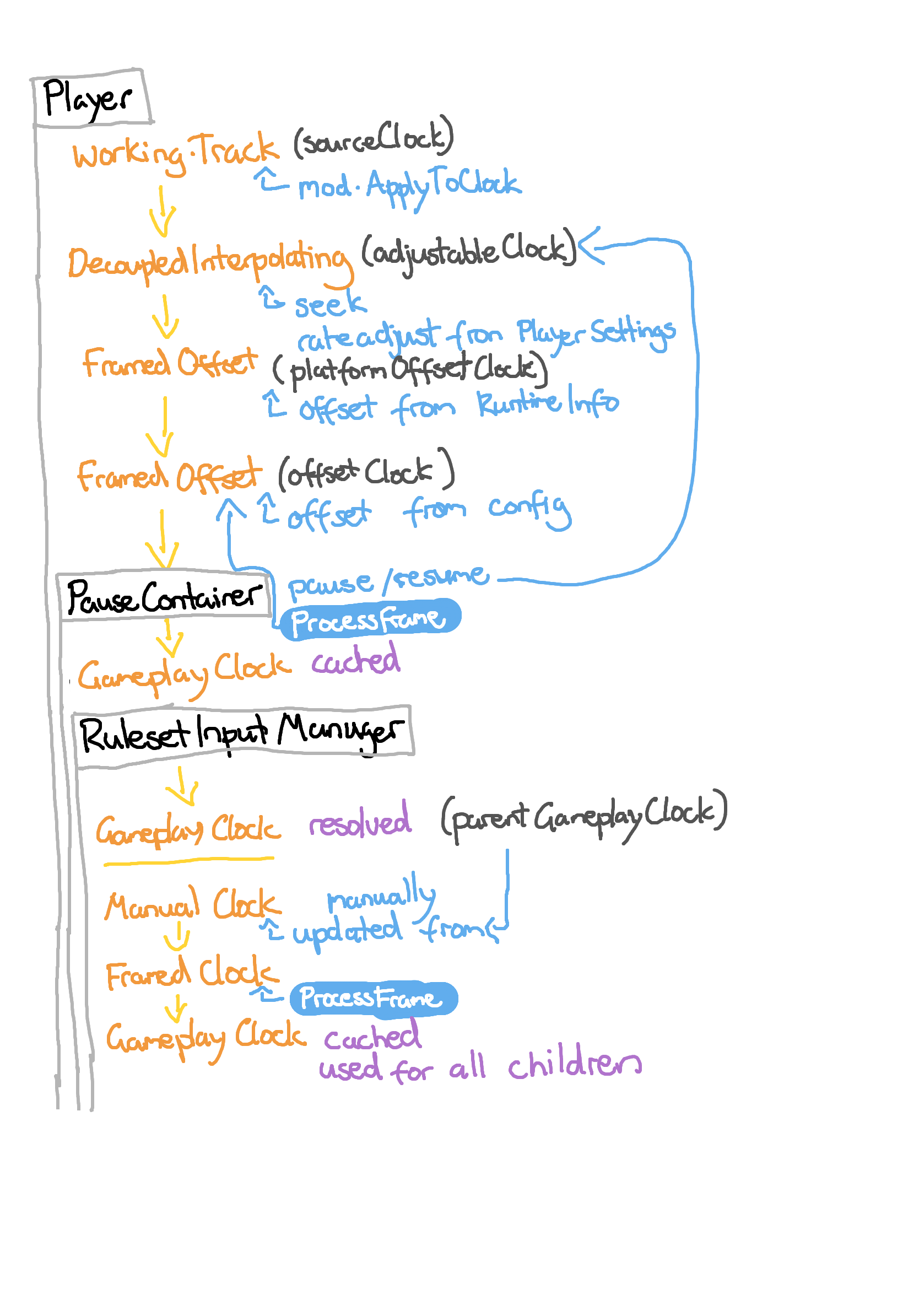 To allow for the various different components to harmoniously work together, the gameplay clock stack is quite complex.