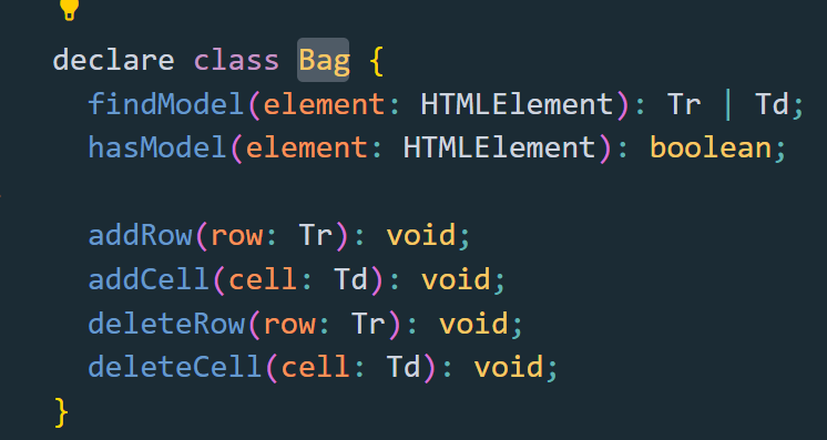 type BoxParts = keyof { body: Bag; head: Bag; foot: Bag };