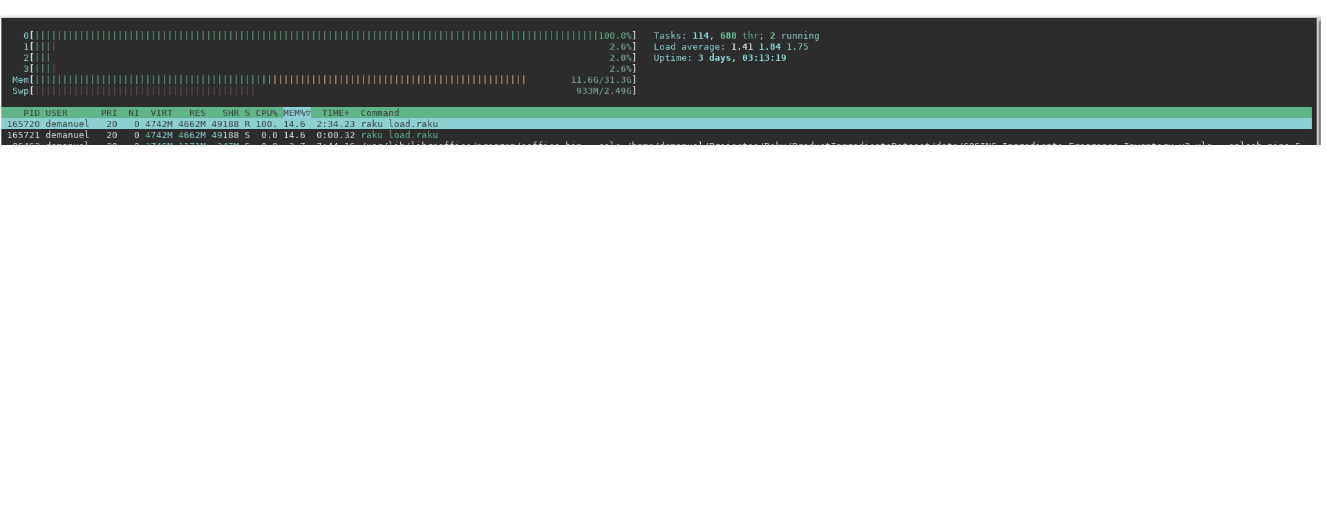This code will use more than 5Gbytes of memory [1], only one core is used [2] and it takes more than 3m30s (in comparison a perl version takes around 15 seconds to parse the file)