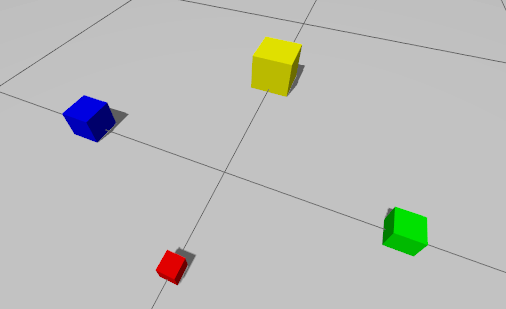 端末1で次のコマンドを実行すると、色付きの立方体が配置されたワールドが表示されます。